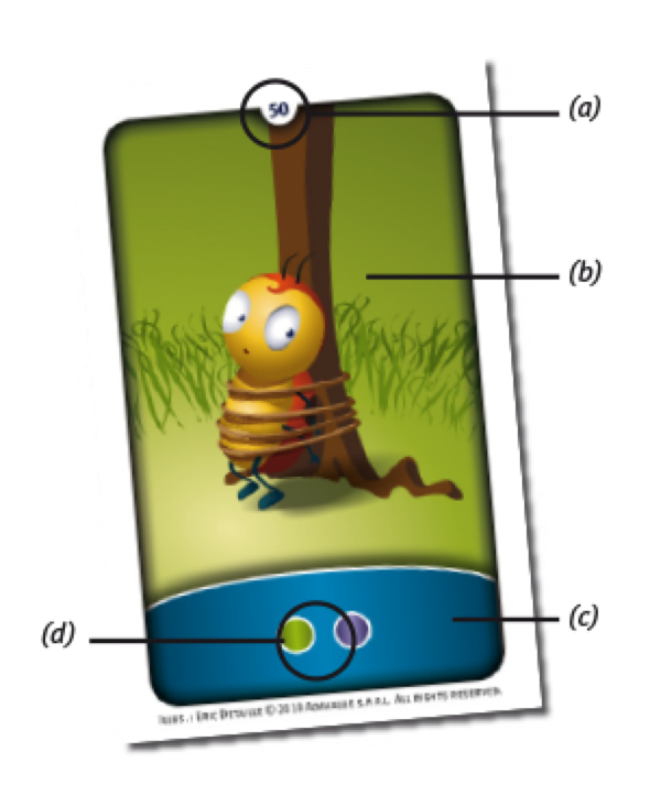- Soit la couleur principale de la carte correspond. Il pose alors sa nouvelle carte sur la carte précédente et peut continuer l’histoire en s’inspirant de l’illustration de sa propre carte. Il garde alors sa première carte en main.